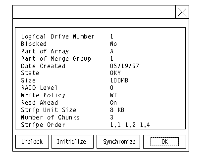 You can monitor the logical drive information by clicking on the desired logical drive button on the Main Screen of the