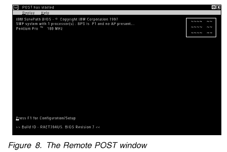 All POST data will be displayed in and recorded by the Remote POST Console as the remote system completes POST. While you are monitoring POST on a remote system, all local keystrokes are relayed automatically to the remote system, enabling you to interact with the POST process on the remote system.