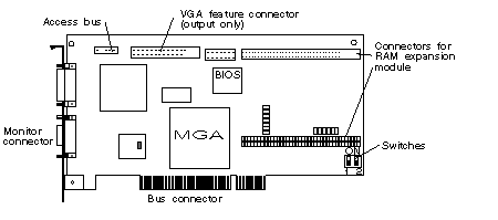 By default, the MGA adapter VGA feature is enabled (Switch 2=Off) for single-screen operation, which means that any other installed VGA must be disabled.
