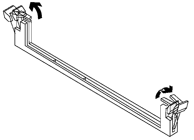 1. Locate the two clips that hold the memory module in place. One clip holds the left edge of the module and the other clip holds the right edge.