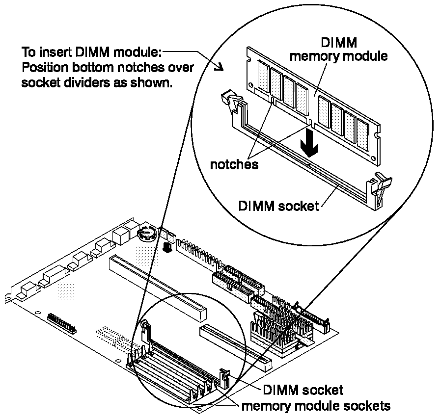 The clips on the right and left sides of the socket should automatically lock into the notches on both sides of the DIMM. If the clips do not lock, make sure you have inserted the DIMM correctly end have pushed it all the way down.
