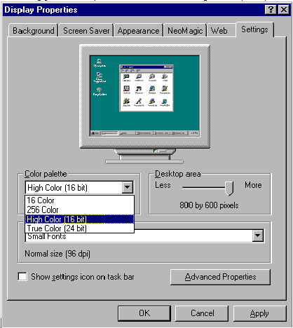 (note: not all ThinkPads support greater than 256 colors at all resolutions.)