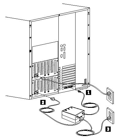 Connect the External Power Control Unit control cable, 1 , external power control unit power cord, 2 , and system power