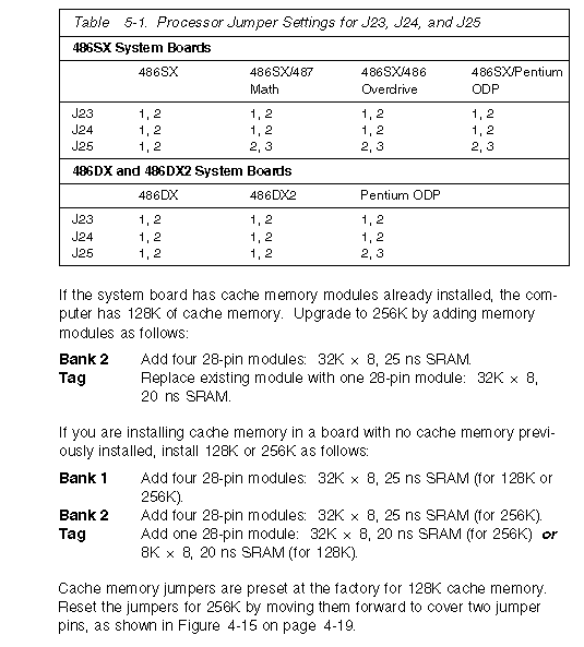 PS/1 - 486SX/DX/DX2 Processor Jumper Settings For J23/24/25