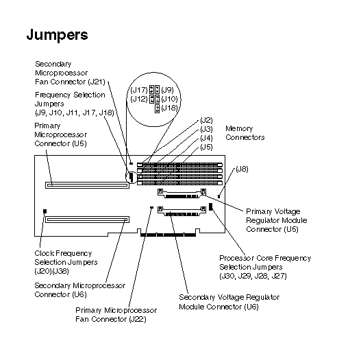 Processor core frequency selection jumper (Jumpers are installed on J27 and J30; |