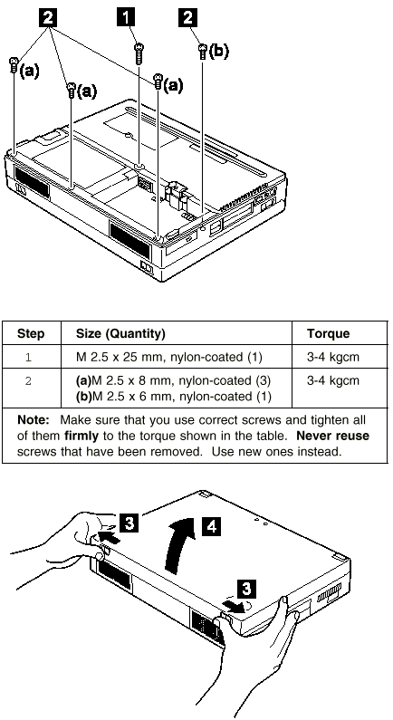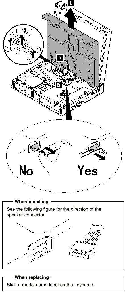 Note: In order not to damage the connectors, pull the keyboard assembly toward you a little in step 5, and then go to step 6.