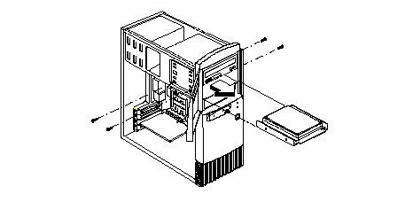 NOTE: If the hard disk drive is 3.5-in. and its capacity is over 10GB, it is then secured to an adapter tray to bay 2. This reduces any acoustic interference.