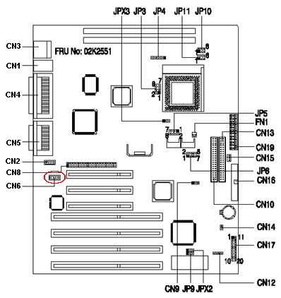 On the motherboard locate socket CN6, circled in red below, and connect the other end of the audio cable.