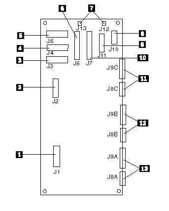 11, 12, 13 J8A, J8B, J8C, Power control and status signals from supply