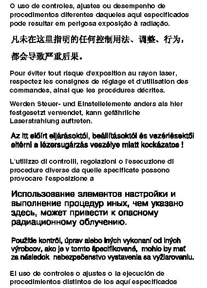 Opening the CD-ROM drive could result in exposure to hazardous laser radiation. There are no serviceable parts inside the CD-ROM drive. Do not open.