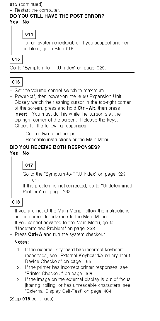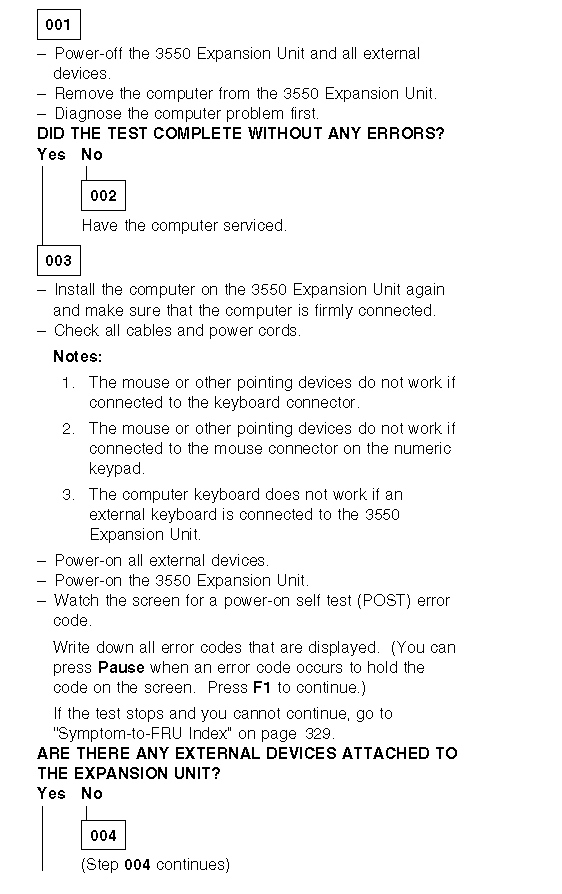 2. Have the external keyboard, mouse, parallel and serial devices connected to the computer and test the computer. If no problem exists, connect them to the 3550 Expansion Unit and test the 3550 Expansion Unit with the computer installed.