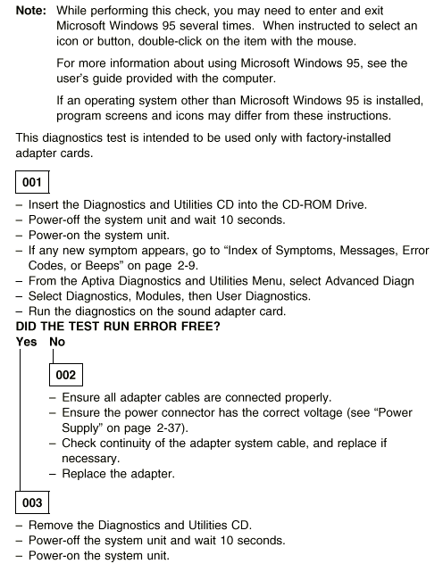 Aptiva - 2162 Diagnostics - Factory installed riser card and sound card