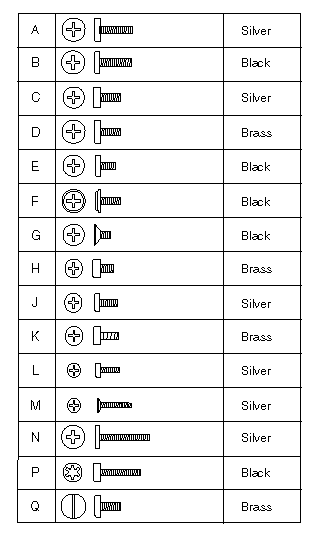Use the chart below to match the size and shape of the screws used in the computer you are servicing.