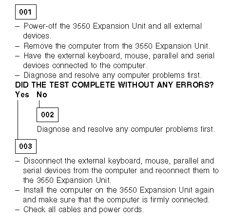 If there is a problem with the computer, solve it first. Then, test the computer with the 3550 Expansion Unit.