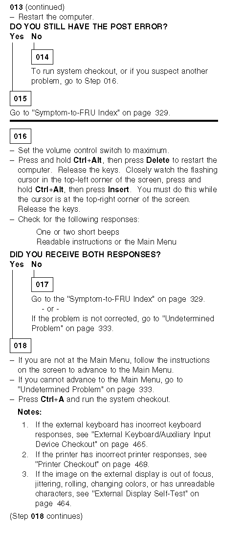 If the test stops and you cannot continue, go to ¿Symptom-to-FRU Index—.