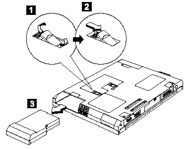 To remove the Battery ASM, press the latch to release, then pull out the Battery ASM.