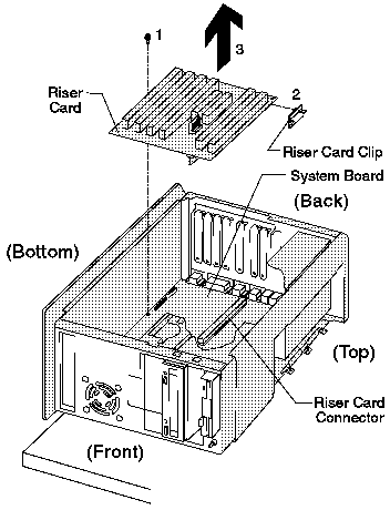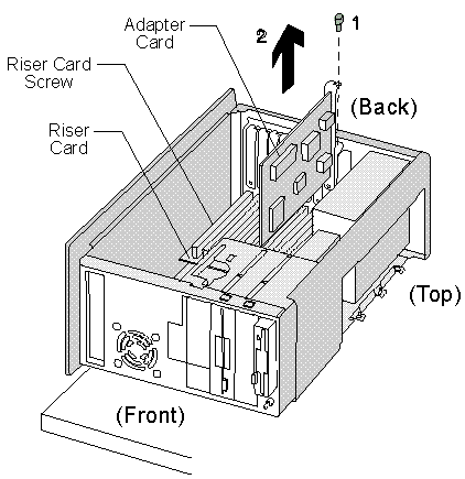 - Modem/Mwave card - There is one screw on the side of the card holding it in place. Remove this screw and pull the card straight out. The following diagram illustrates how to remove an Mwave or any adapter card.
