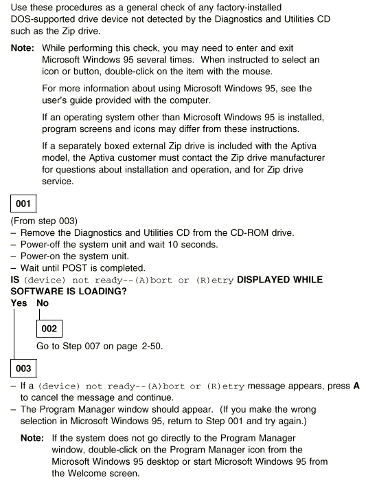 Aptiva - 2134/2176 Diagnostics - Diagnostics for factory installed drive devices not supported by the diagnostics program