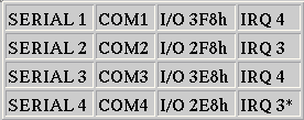 *Avoid COM4 if possible as many video graphics systems share COM4's memory address.