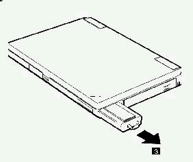 2. Locate the pull tab (3) of the battery; pull the tab to remove the battery out of the battery bay.