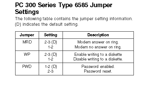 IBM PC350 - Type 6585 system board jumper settings