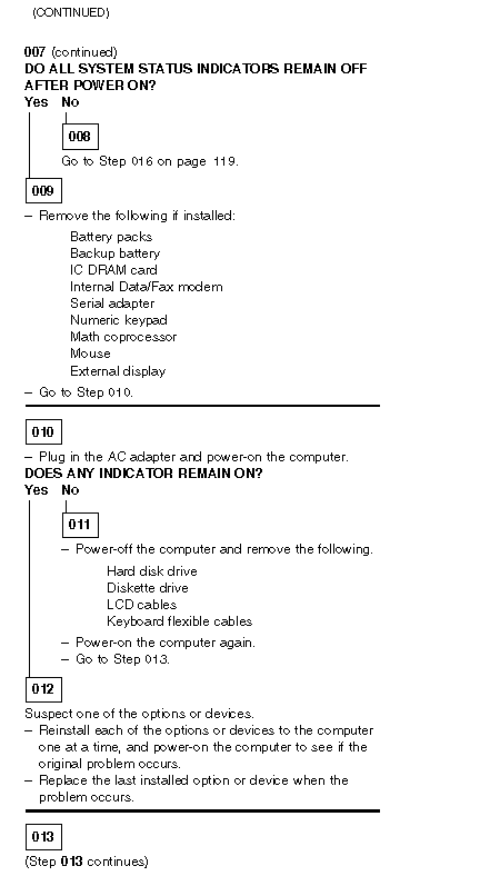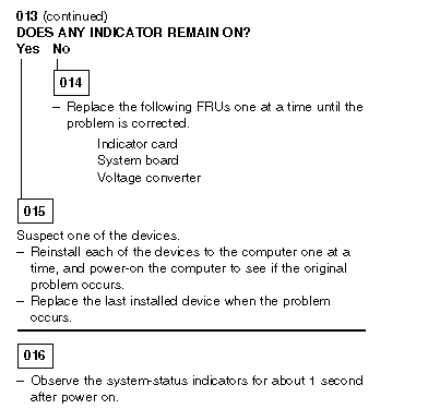 If the status lights match either condition A or B, replace the voltage converter. If the status lights are different from condition A or B, or replacing the voltage converter does not correct the problem, go to żUndetermined Problem—.