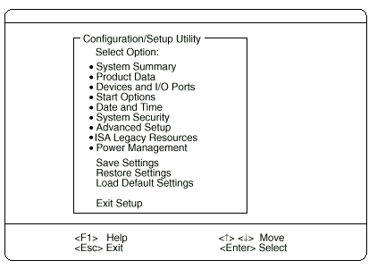 From the Configuration/Setup Utility program Main Menu, you can select the settings that you want to change.