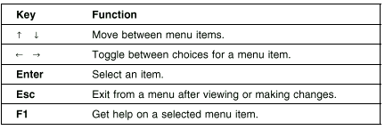 2. When the message Press F1 to enter Configuration/Setup appears, press F1. The Configuration/Setup Utility program menu appears. For information about the menus, see "Configuration/Setup Utility Program Menus" on