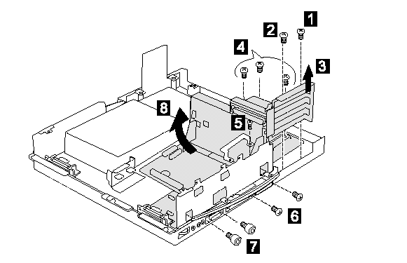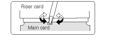In step 2 , use a tool such as a bladed screwdriver to easily disconnect the riser card and main card. Be careful not to damage the connector.