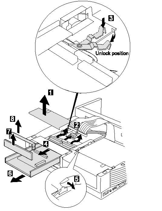 Remove the devices that are installed in the bay; then remove the UltraBay tray or device tray as follows: