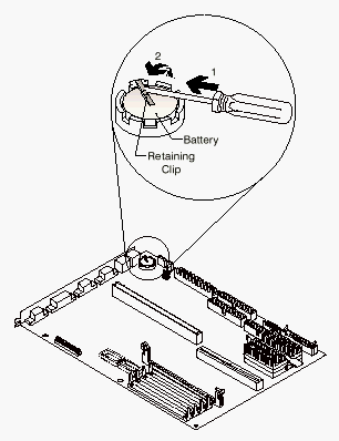 Attention: Be careful when removing the battery. If the retaining clip is broken, the system board must be replaced.
