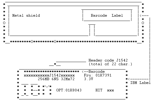 - One of the 256MB memory DIMMs is in the J1 memory slot, which locates furthest away from the processor, and the barcode label contains Header Code "J1542".