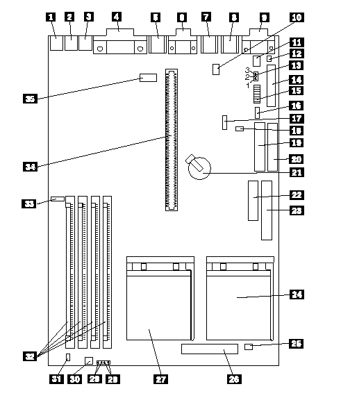 IntelliStation Type 6899 - Pentium Pro 200 MHz System Board Locations: