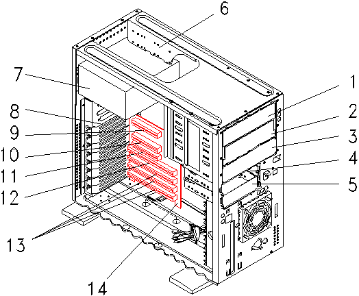 1.Bay 1. This bay can hold a 5.25-inch half-high drive, such as diskette, hard disk, tape, or CD-ROM drive.
