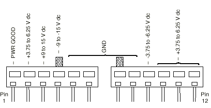 Refer to the following figures when checking for voltages on power supply cable connectors.
