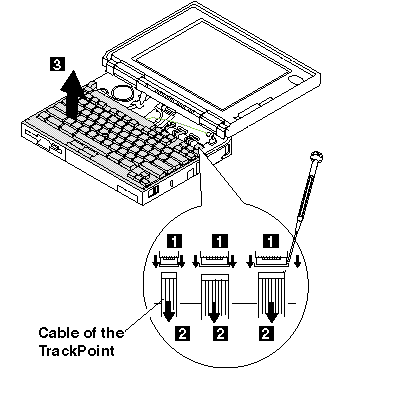 When replacing the keyboard unit, connect the keyboard connector as shown in the figure; then replace the keyboard.