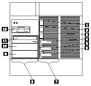 Internal Drive Bays: Internal drives are installed in bays. Your server comes with one 3.5-inch, 1.44 MB diskette drive and one CD-ROM drive.