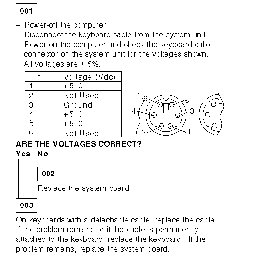 On keyboards with a detachable cable, replace the cable. If the problem remains or if the cable is permanently attached to the keyboard, replace the keyboard. If the problem remains, replace the system board.