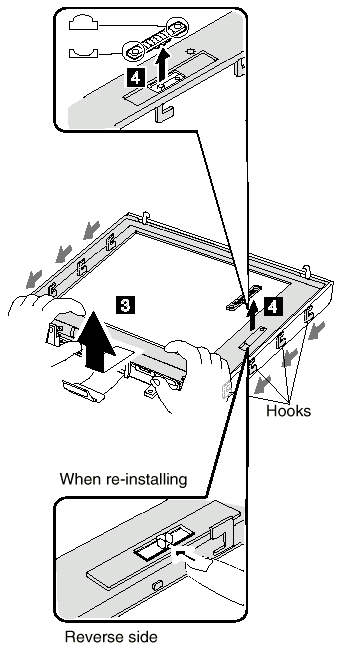 The LCD front cover has several latches. Release the latches as shown in step 3 .
