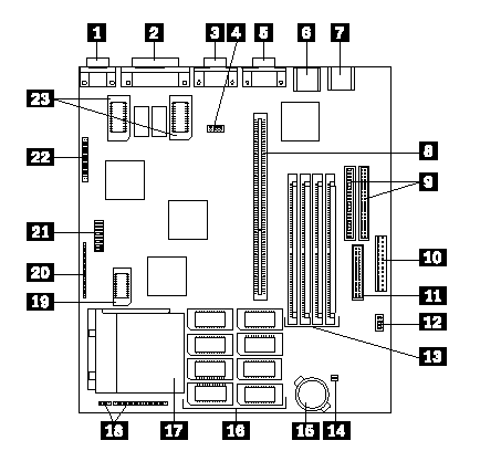 PC 330/350 Series (Type 65X6) - Pentium 75/90/100 MHz System Board Locations:
