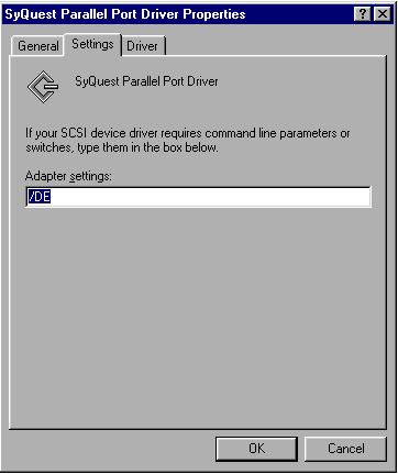 Change the settings of the Syquest parallel port drive from /95 to /DE per the instructions below:
