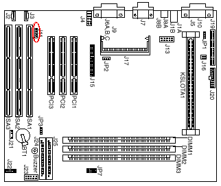 On the motherboard locate socket J11, circled in red below, and connect the other end of the audio cable.