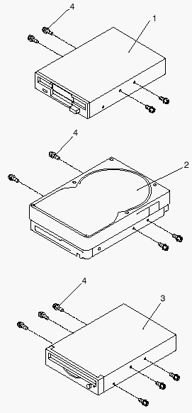 Aptiva - 2140/2142 diskette, hard disk drives, and Zip Drive FRU part number list