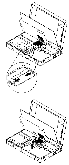 To remove the optional SO-DIMM, release the latches as shown, then remove the SO-DIMM card.