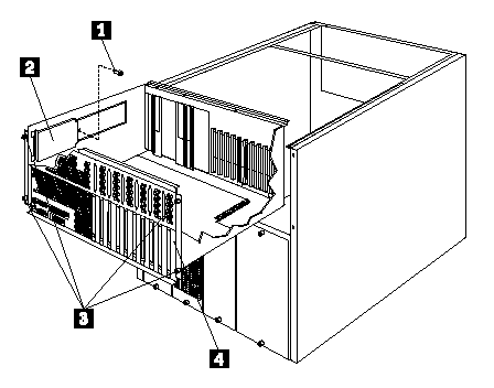 8. Loosen the 4 central electronics complex (CEC) screws 3 .