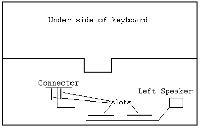 Speaker wire in Slot at the front of the keyboard.