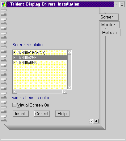 8. When you have set your screen resolution and monitor type, click "Install". The display drivers will be copied to the hard disk. This may take a few minutes.