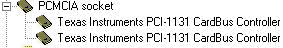 In the Device Manager for Windows 95, the PCMCIA socket lists two CardBus Controllers and they both have an exclamation point by them. It looks like this: