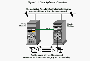 Vinca's StandbyServer provides complete server protection against hardware or software failure. As data is written to the primary server it is instantly mirrored to a second partition for data protection. If the primary fails for any reason, the mirrored data is as recent as the last disk write.