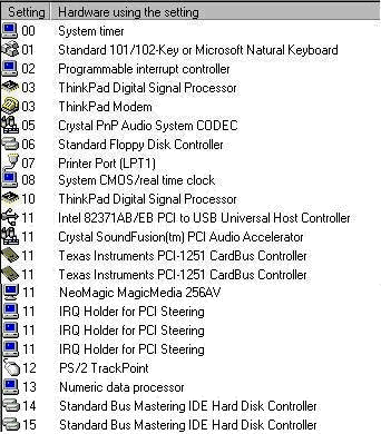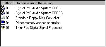 These are the default System Resources allocated by Windows 98 on ThinkPad 600E.